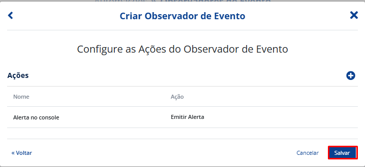 Configure o observador de eventos conforme a imagem abaixo. Após, clique em “Avançar.