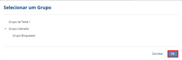 A lista de grupos e subgrupos irá variar de acordo com os grupos criados por você no seu ambiente. Após definir o grupo desejado, clique em “Ok“.